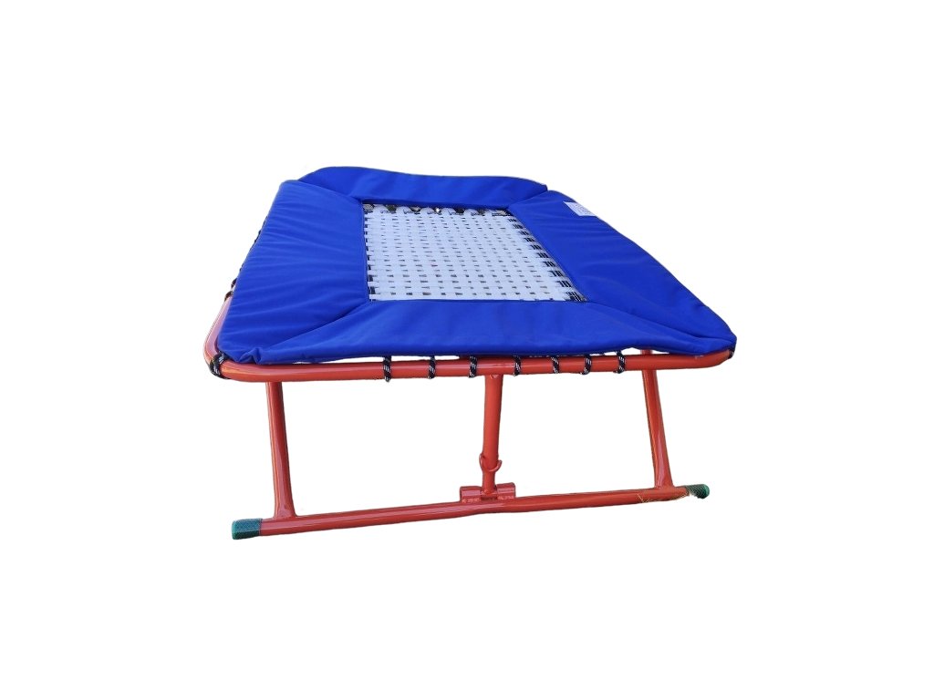 Vysoká stabilita: Masívny oceľový rám s protišmykovými koncovkami na nohách zaisťuje, že trampolínka zostane pevne na mieste aj pri tých najprudších dopadoch a neodiera podlahu telocvične.