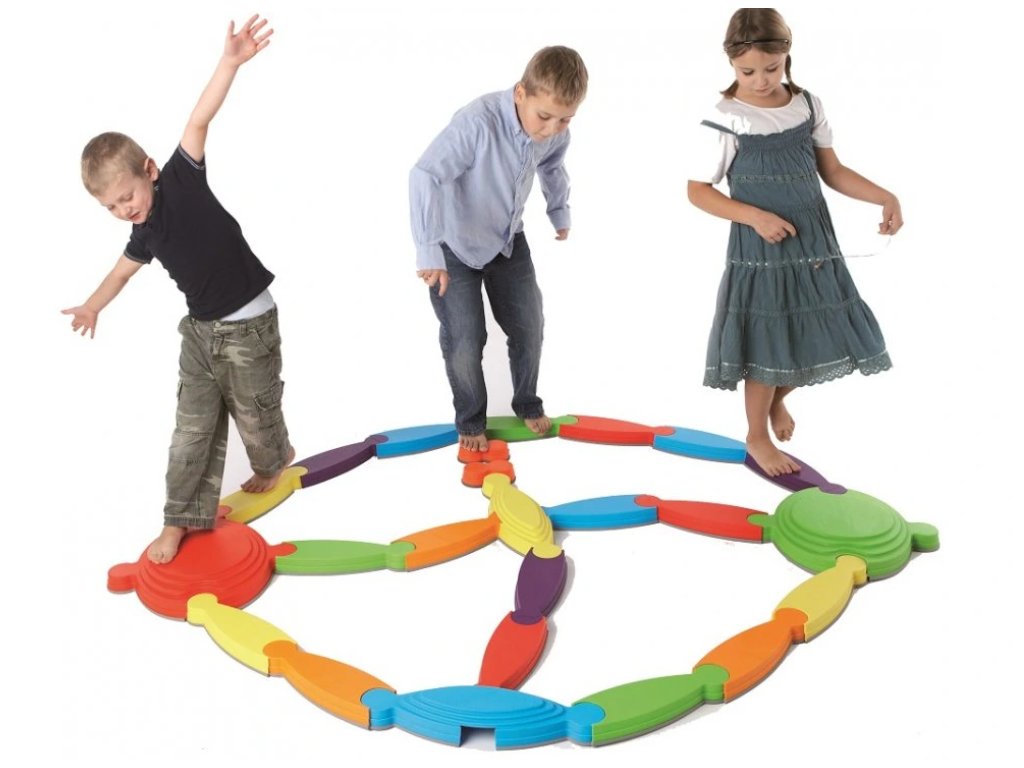 Motorická zostava je vhodná na tréning rovnováhy, pohybové cvičenia aj skupinové hry. Pomáha rozvíjať koordináciu, stabilitu a pohybové zručnosti detí hravou formou.